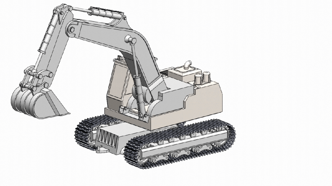 通过以上简单的拖拽操作,一个清晰的挖掘机动作动画已快速生成。借助SOLIDWORKS Motion的自动关键帧功能,制作产品展示动画变得既简单又高效。