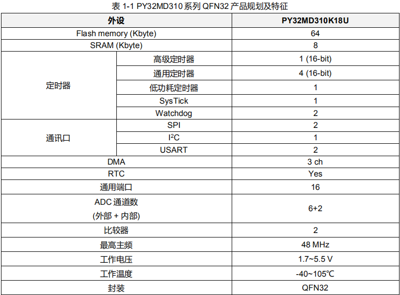 PY32MD310单片机特性: