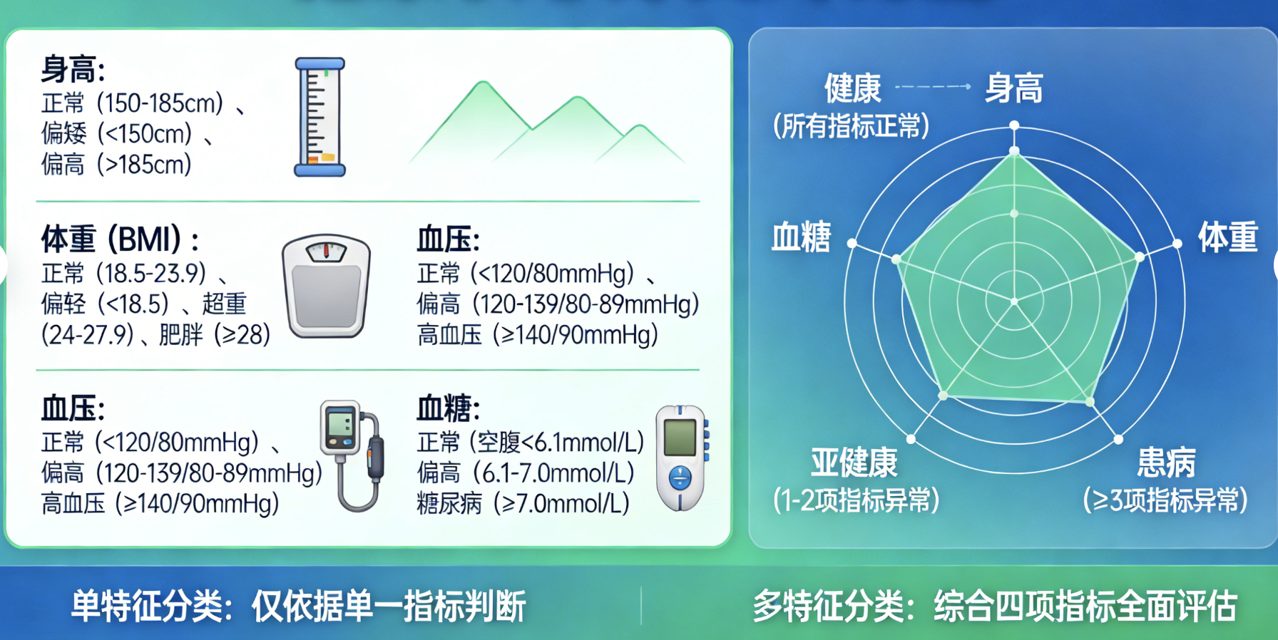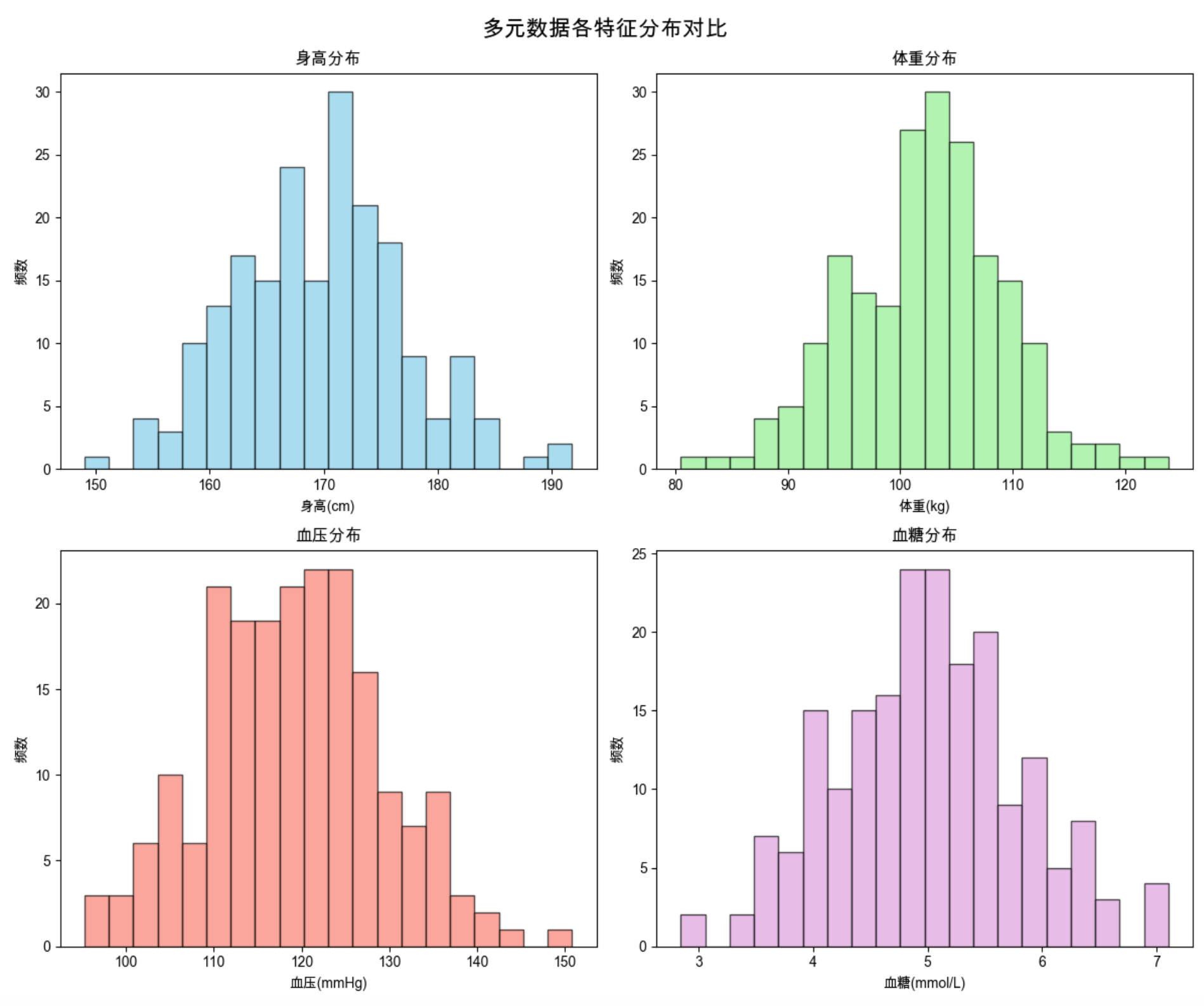多元数据就像给一个人做全面体检:不只是测身高(单变量),还要测体重、血压、血糖等多个指标(多变量),这些指标共同构成了多元数据。