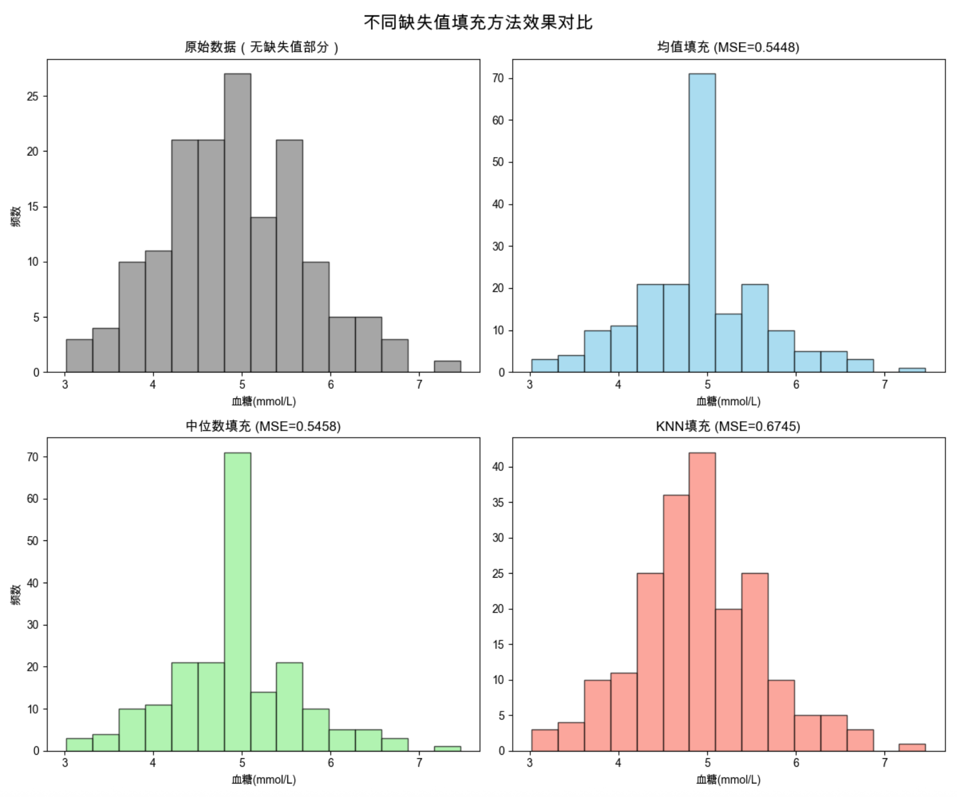 - 记录实验结论(比如 "KNN 填充比均值填充 MSE 低 30%")
