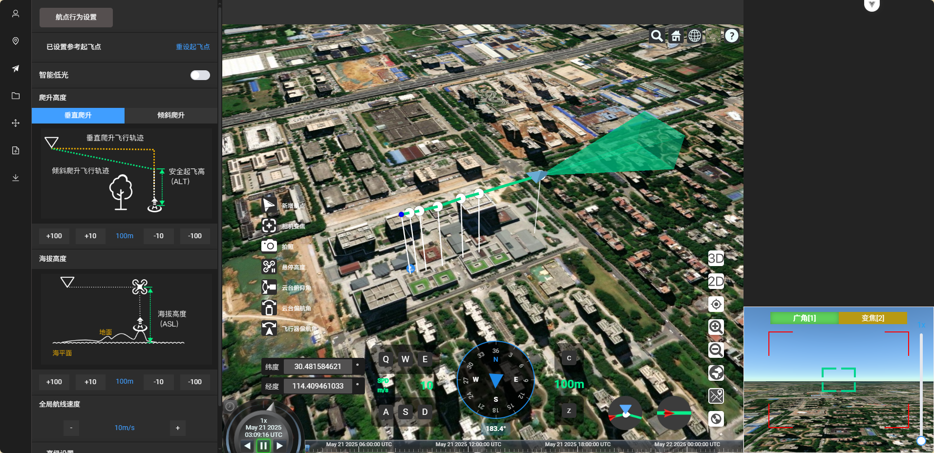 - 用户在前端界面绘制航线、配置行为,通过 API 提交数据到后端。