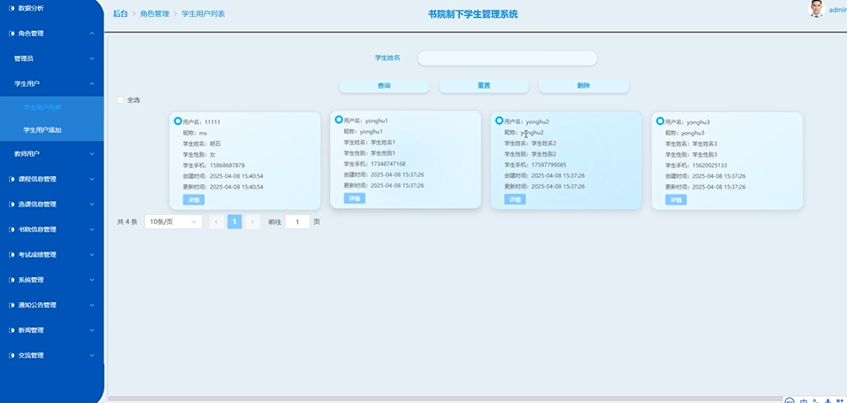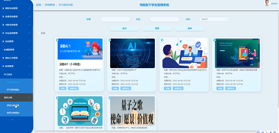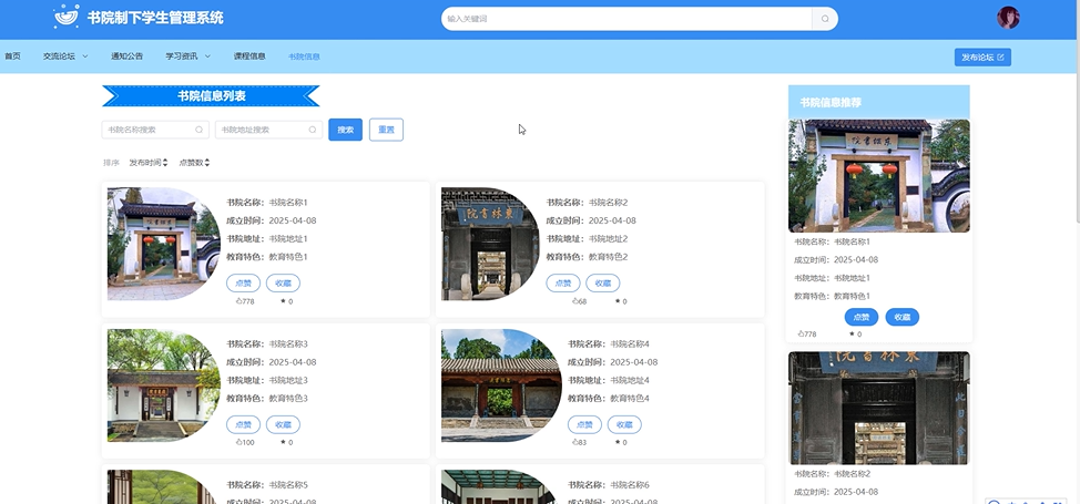 近年来,伴随我国高等教育改革的持续推进,书院制作为创新学生管理模式,正逐步在高校中落地生根。国内学术界与实践界积极探索利用现代信息技术赋能书院制管理,其中Spring Boot与Vue框架因其高效开发、灵活部署的特性,成为构建学生管理系统的热门选择。