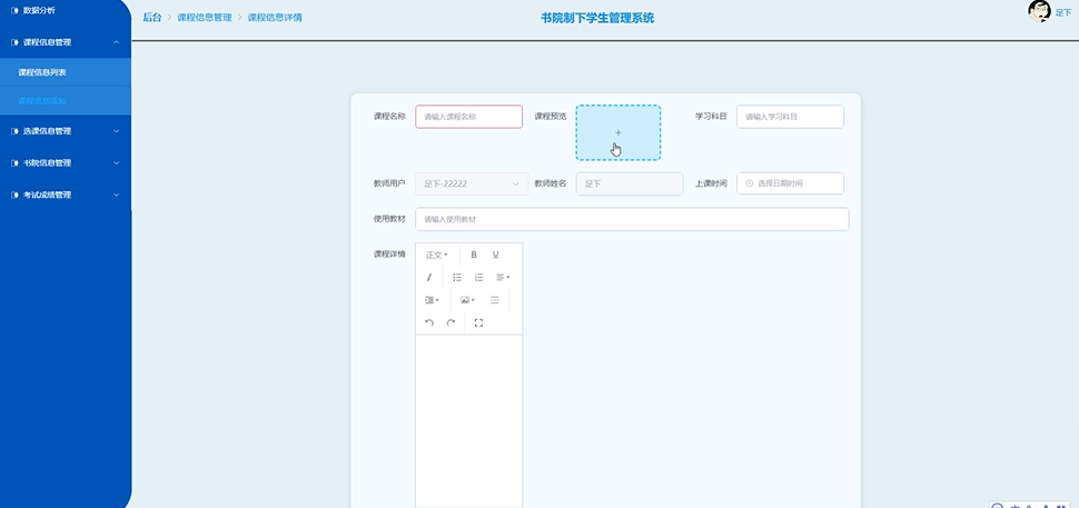 教师用户添加课程信息测试: