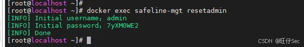 第一次登录雷池需要初始化你的管理员账户(默认会执行),如果没有找到账户密码,手动执行以下命令即可