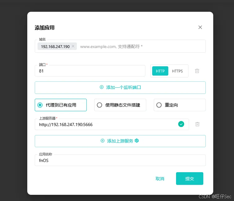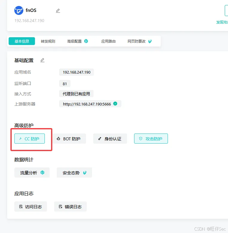 那么假设我现在这里有一个业务场景,在我的192.168.247.190下存放着一台飞牛OS系统,我现在要用雷池waf去对它进行安全的防护。接下来开始配置防护