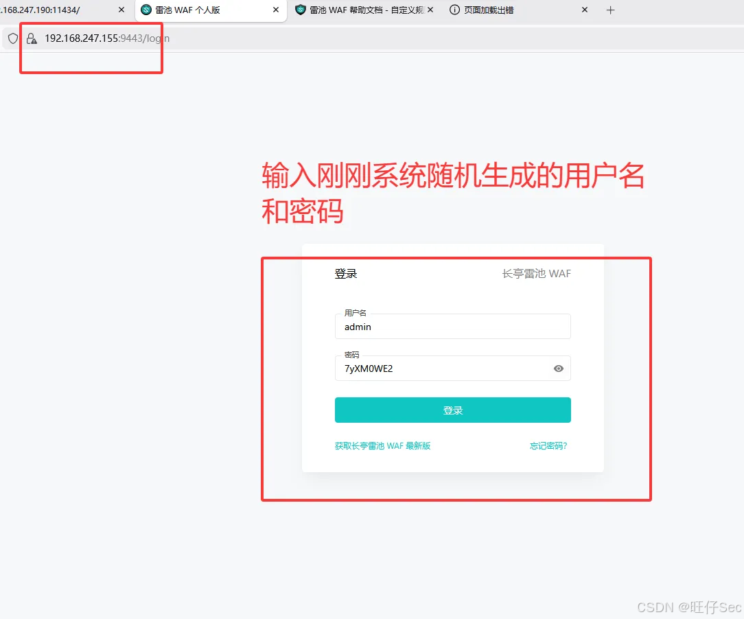 访问雷池控制台