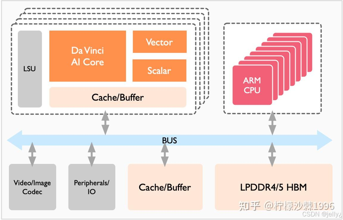 以下是Ascend硬件架构的示意图,展示了Da Vinci AI Core的结构: