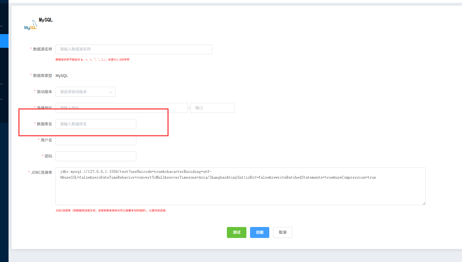 注意:数据库名这一块只要填你随便一个库名就可以了,但是必须要有,后续是会全部库都读取到的。
