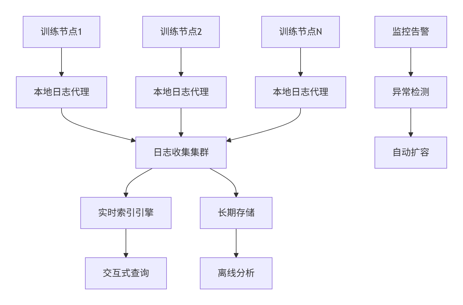 在超大规模AI训练平台中,我们构建了分布式日志聚合系统:
