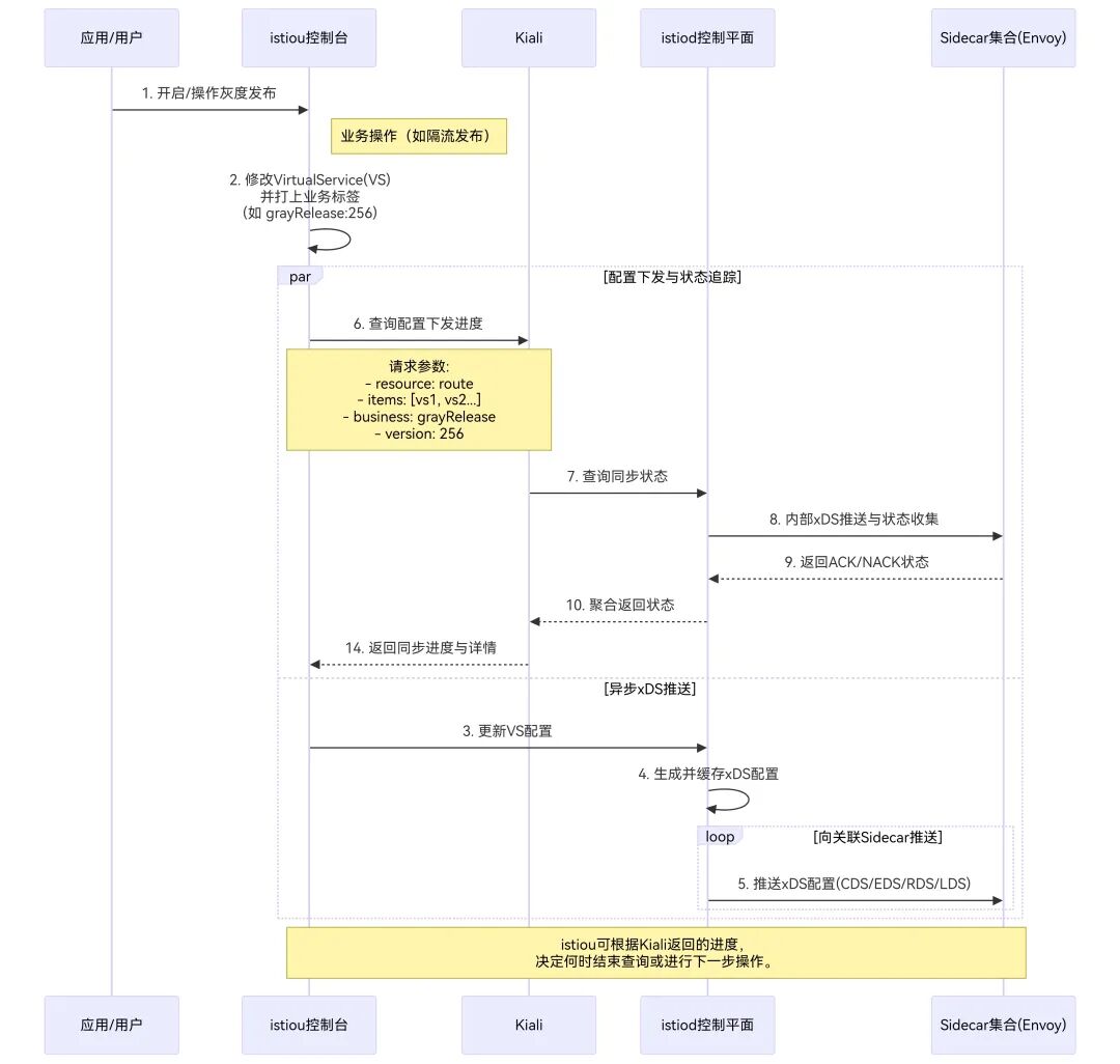 2)istiou如果需要关注配置下发进度,调用kiali暴露的xds同步状态接口查询某一资源类型的xds同步状态。
