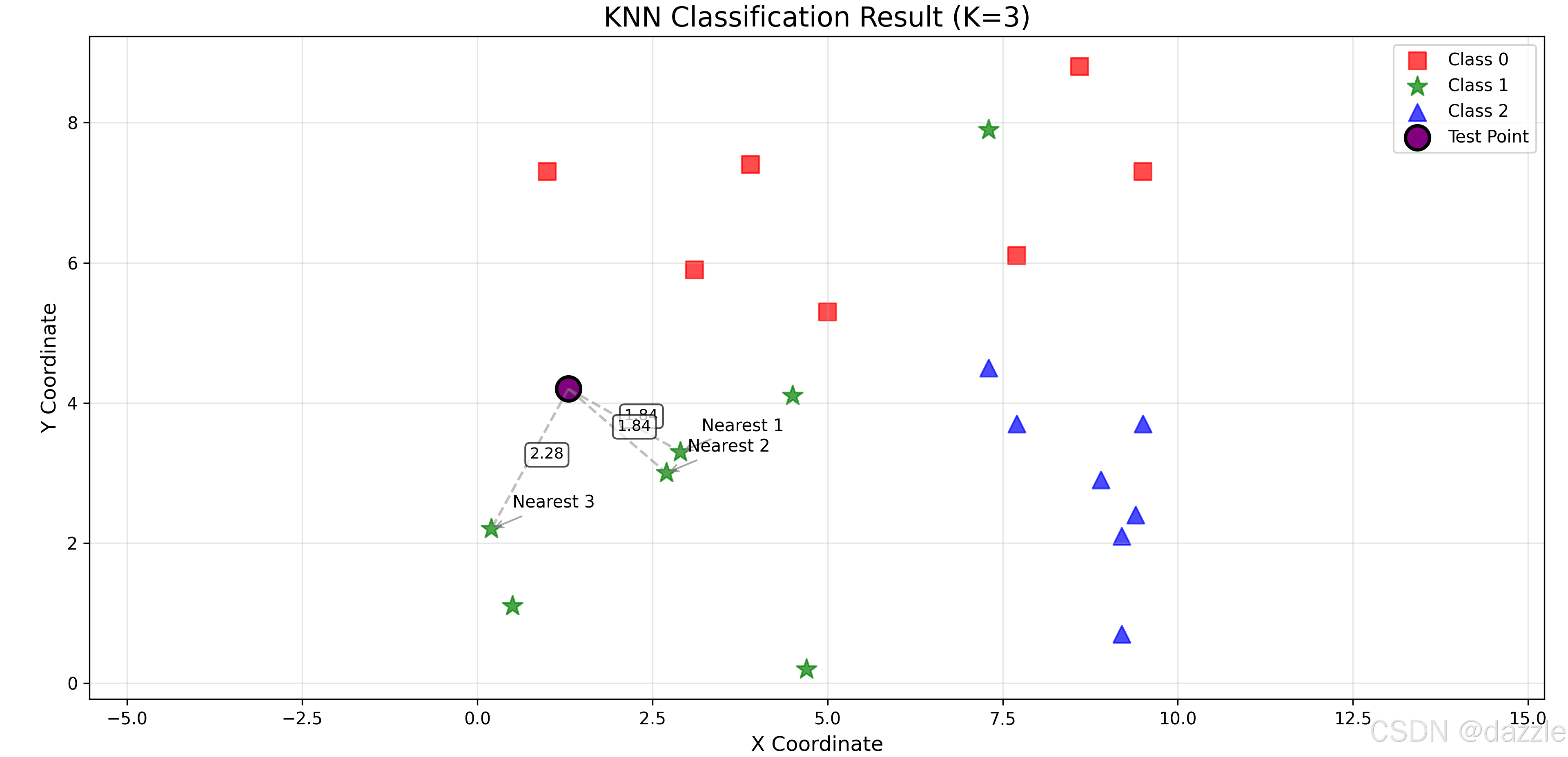 在前两篇文章中,我们已经掌握了KNN算法的理论基础和各种距离计算方式。今天,我们将进入真正的实践环节------不使用任何机器学习库,仅凭数学方法和Python基础功能,从零开始实现一个完整的KNN分类器。这个过程会让你真正理解算法的每个细节,而不仅仅是停留在"调用API"的层面。