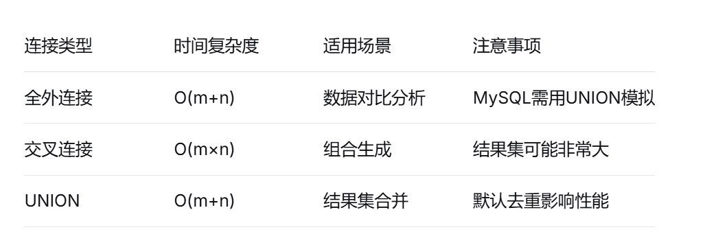 需要注意的是,MySQL不直接支持FULL OUTER JOIN语法,但我们可以通过UNION操作来模拟实现。