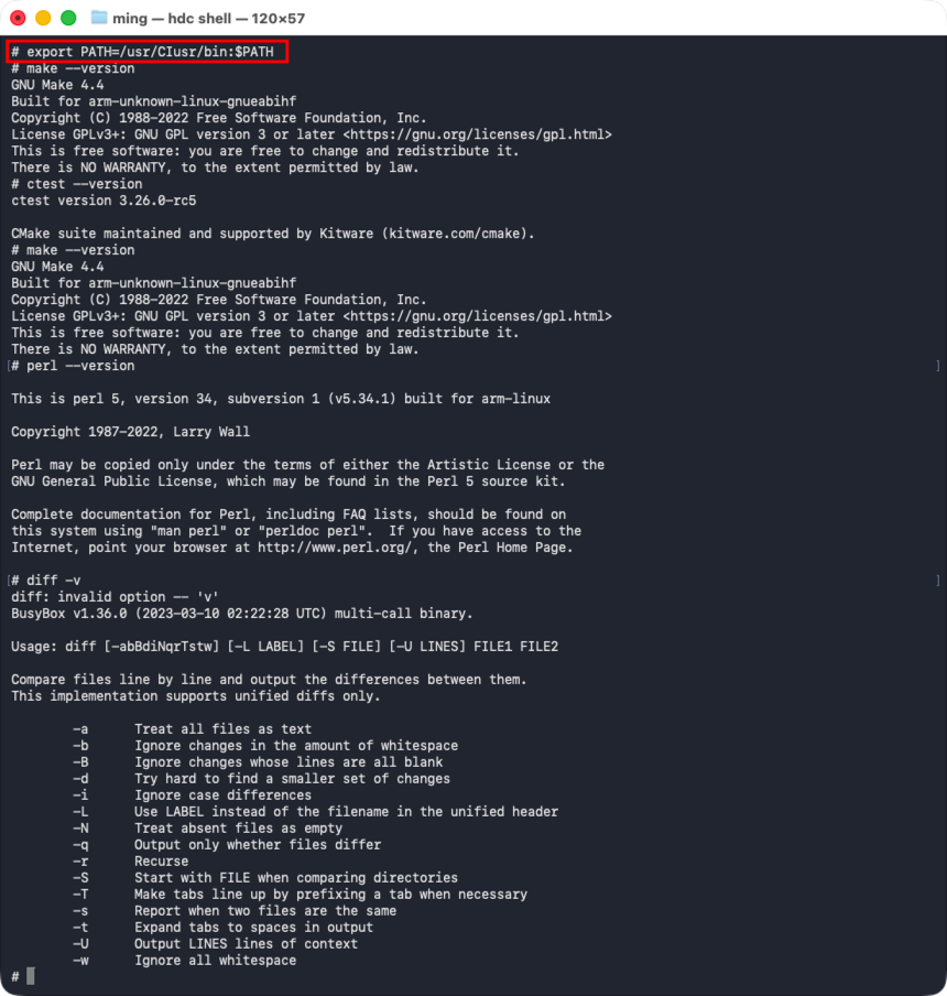 setCIenv.sh[69]: make: inaccessible or not found、setCIenv.sh[70]: cmake: inaccessible or not found、setCIenv.sh[71]: perl: inaccessible or not found问题,表示当前软链接目录未配置到环境变量中,需要继续执行命令export PATH=/usr/CIuser/bin:$PATH完成环境变量添加。