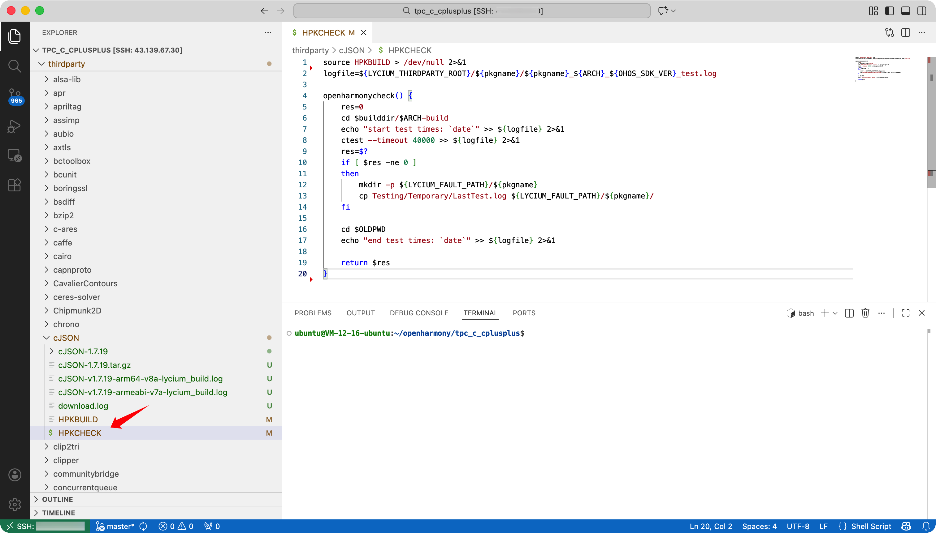 使用VSCode打开tpc_c_cplusplus项目,在thirdparty/cJSON目录创建HPKCHECK文件,按照编译配置模板编写cJSON测试配置文件。