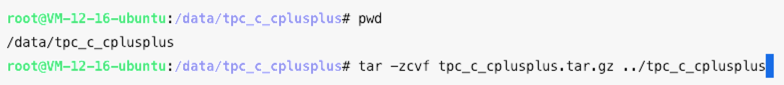 在tpc_c_cplusplus上级目录执行tar -zcvf tpc_c_cplusplus.tar.gz tpc_c_cplusplus将工程进行压缩。