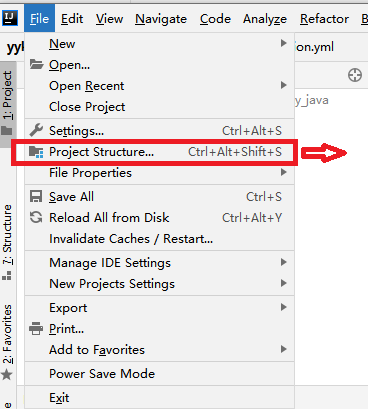 打开设置窗口:点击顶部菜单栏的 File → Project Structure(或按快捷键 Ctrl+Alt+Shift+S)。