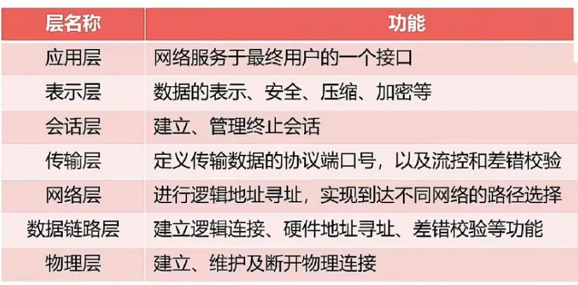 分层结构的优点:开放的标准化接口;多厂商兼容;易于理解、学习和更新协议标准;实现模块化工程,降低了开发实现的复杂度;便于故障排除。