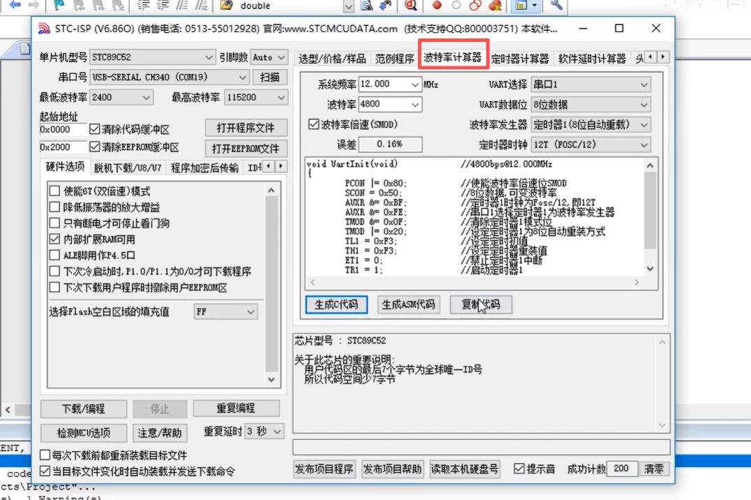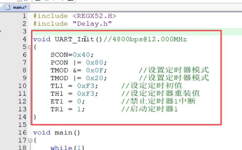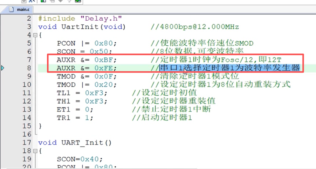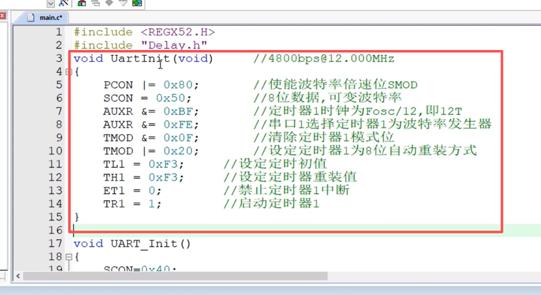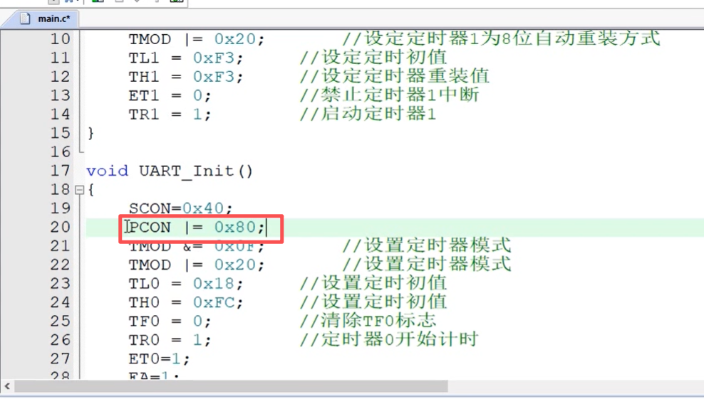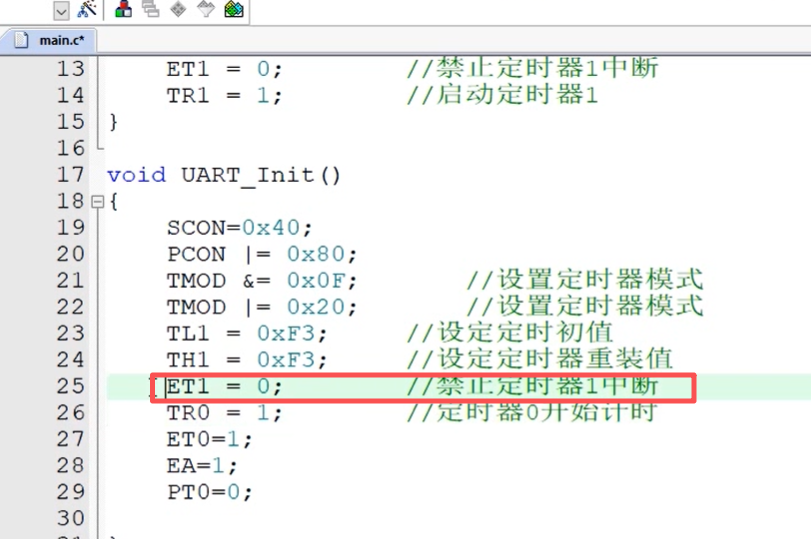 配置的是定时器1,串口只能用定时器1,上面之前配置的是定时器0,