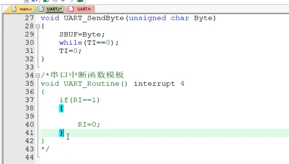 中断有发送中断,接受中断,需要进行判断
