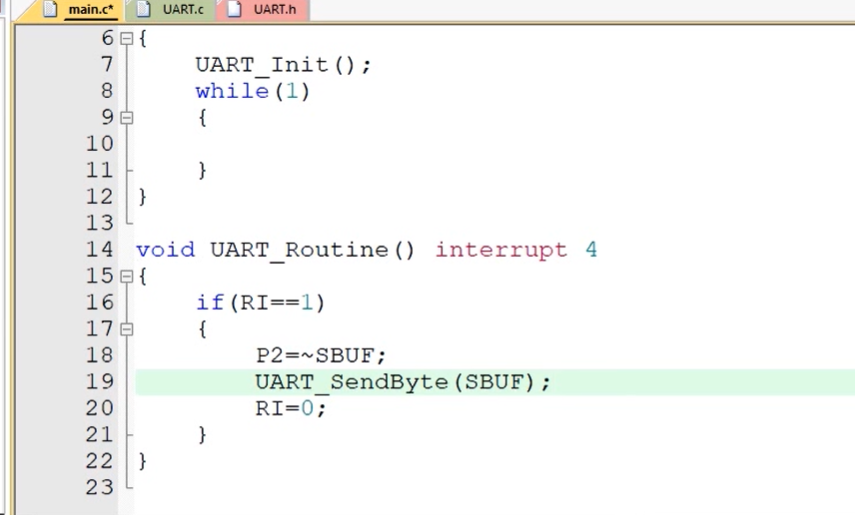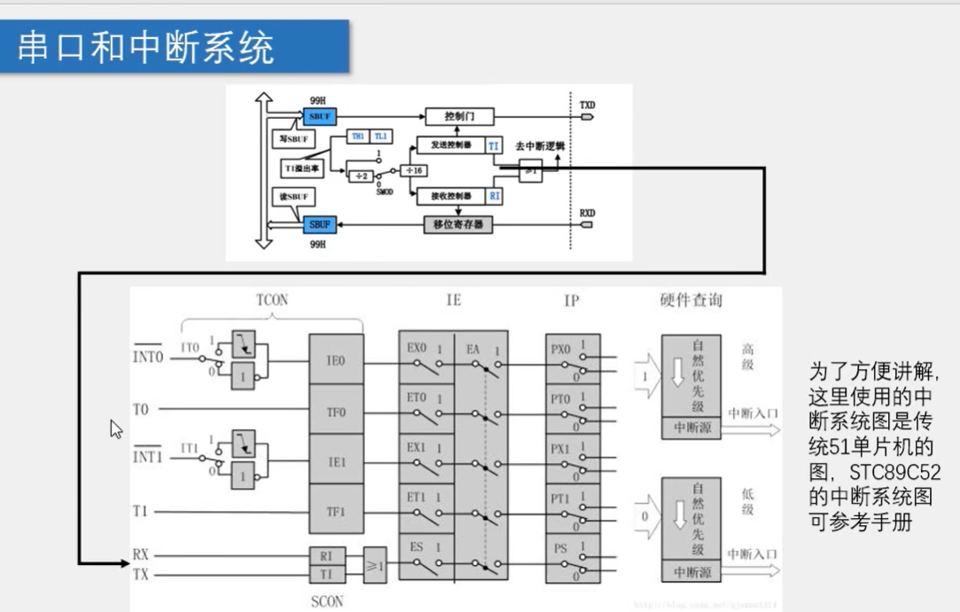 收的的话需要中断系统,我们不知道电脑啥时候发过来,不能一直检测,我们利用中断,当电脑发过来触发中断,在中断函数里面,进行中断处理,把数据拿出来