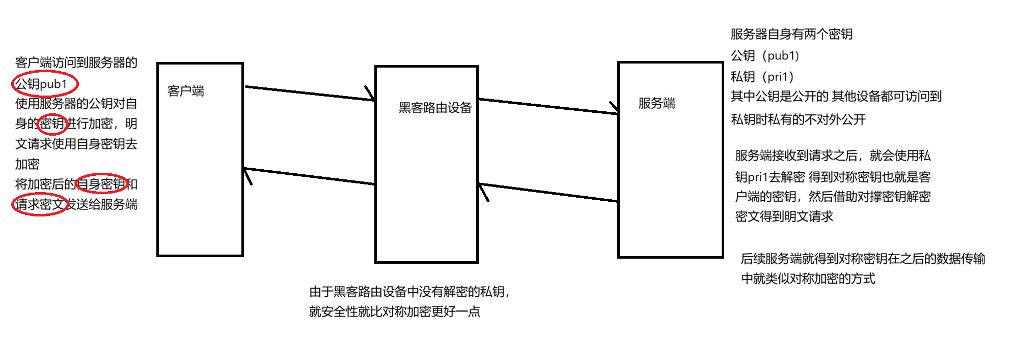 主要是通过服务器公钥加密 服务器私钥解密的方式 保证对称密钥的安全性