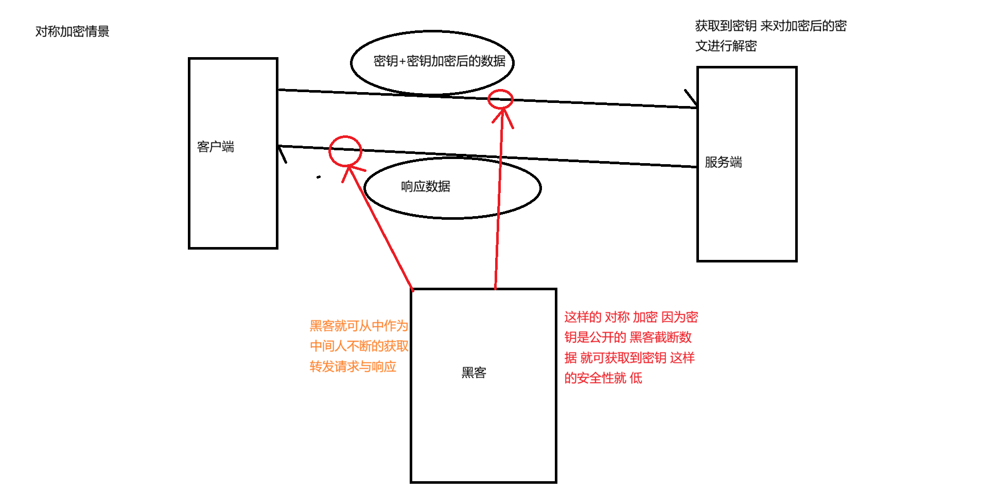 这样的加密逻辑安全性由于密钥是明文传输 容易被获取,在一些安全性要求高的场景下,这样的 加密方式不适用