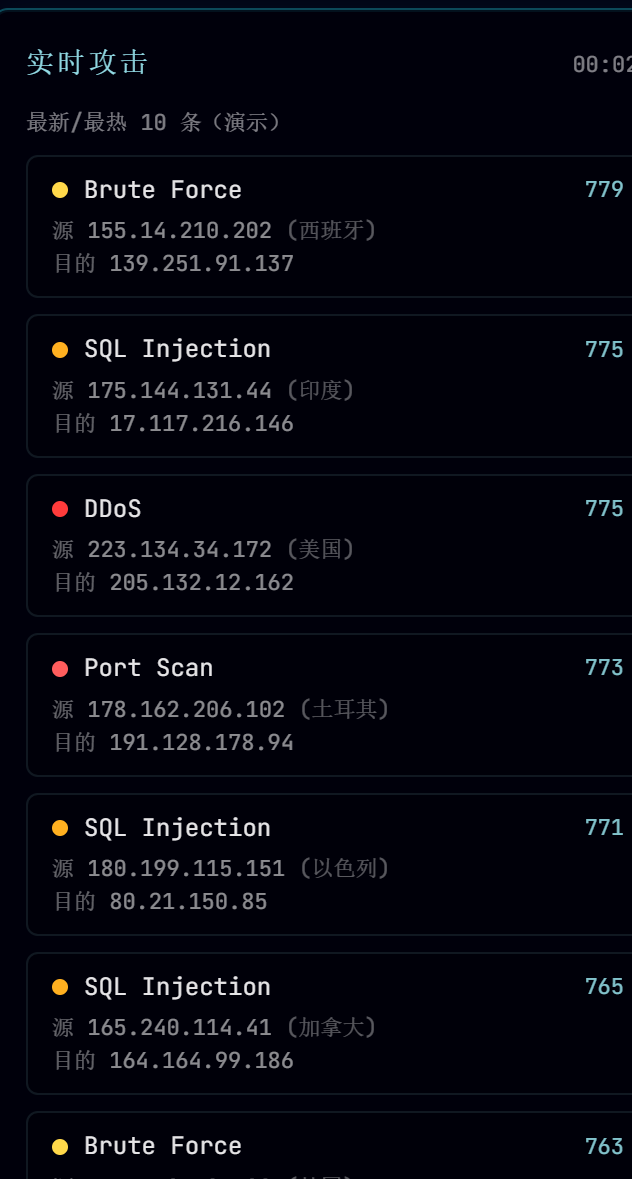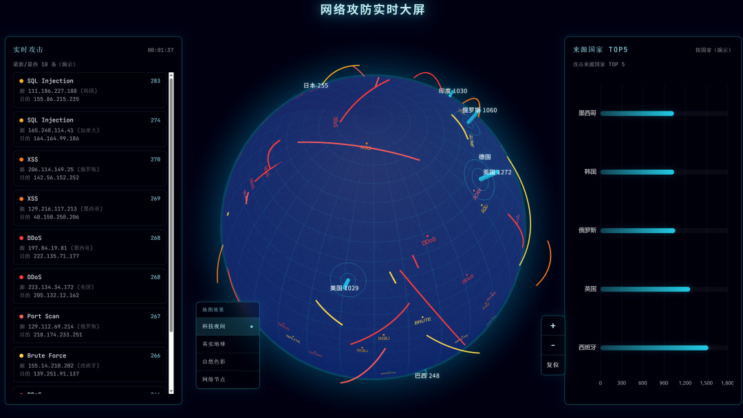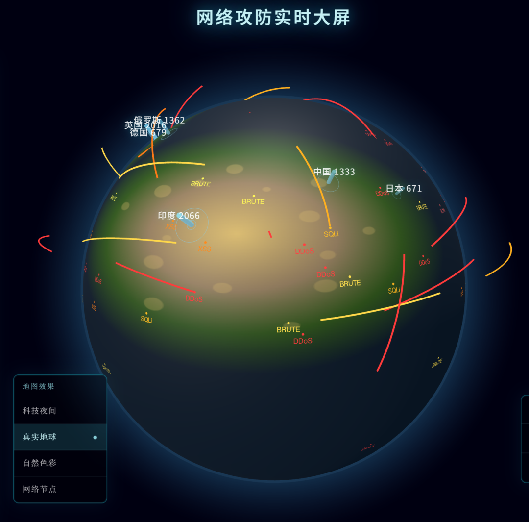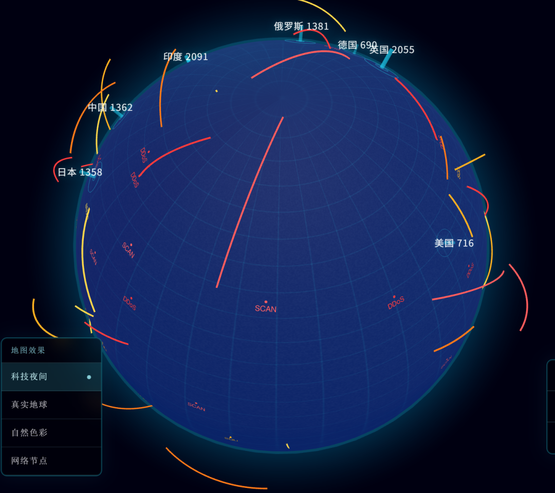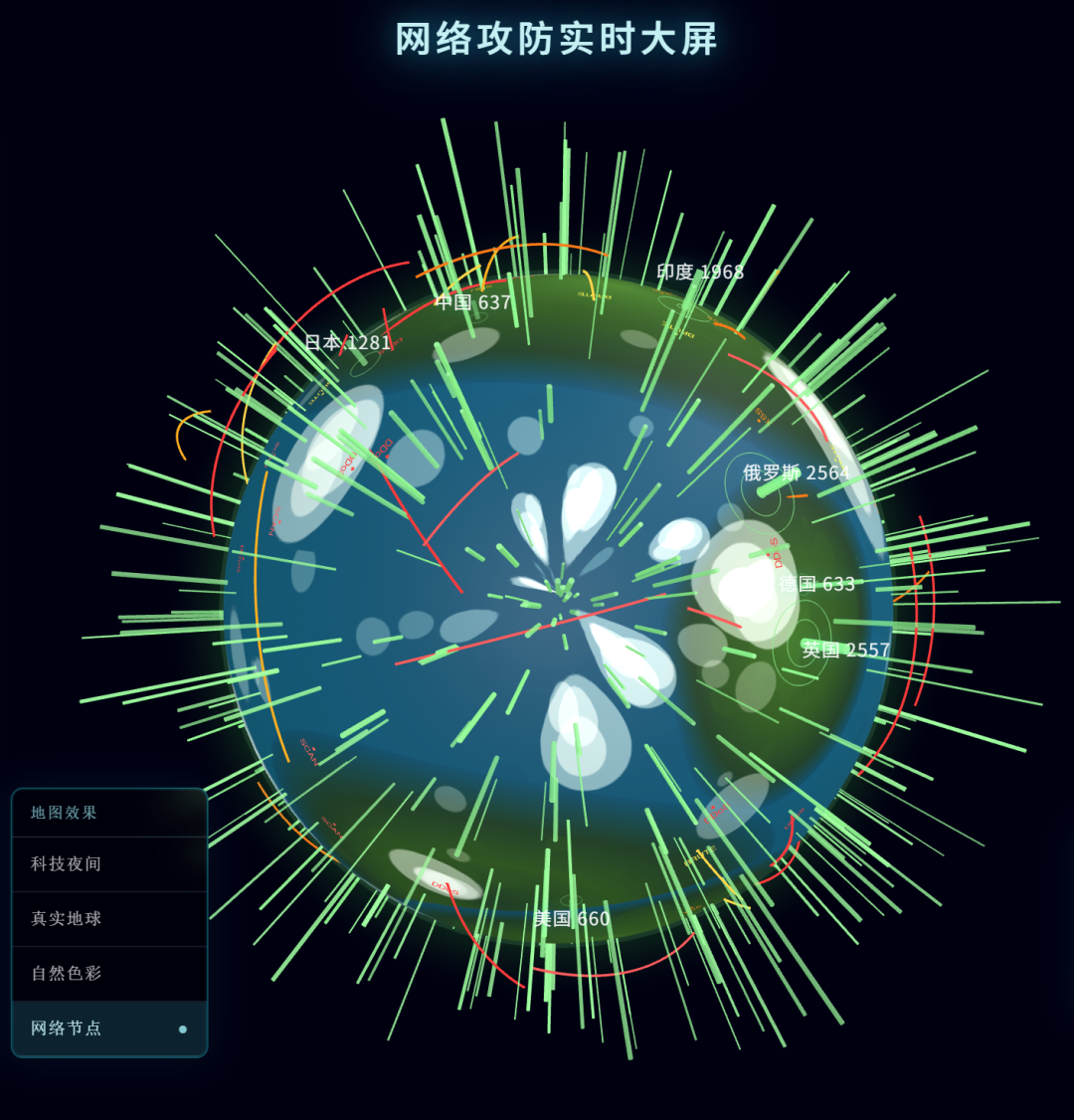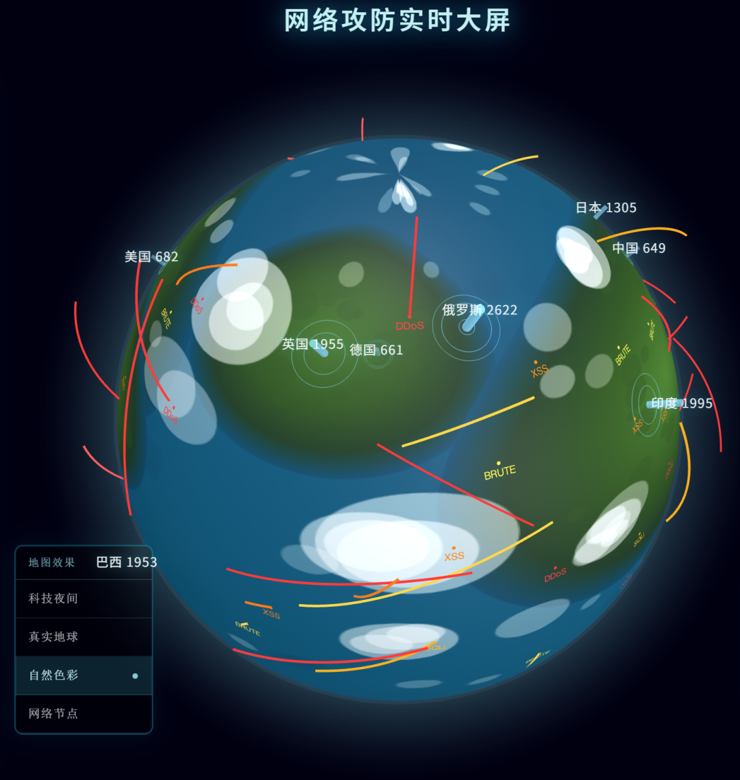 实时网络攻击地图,要能看到飞线在地球上穿梭