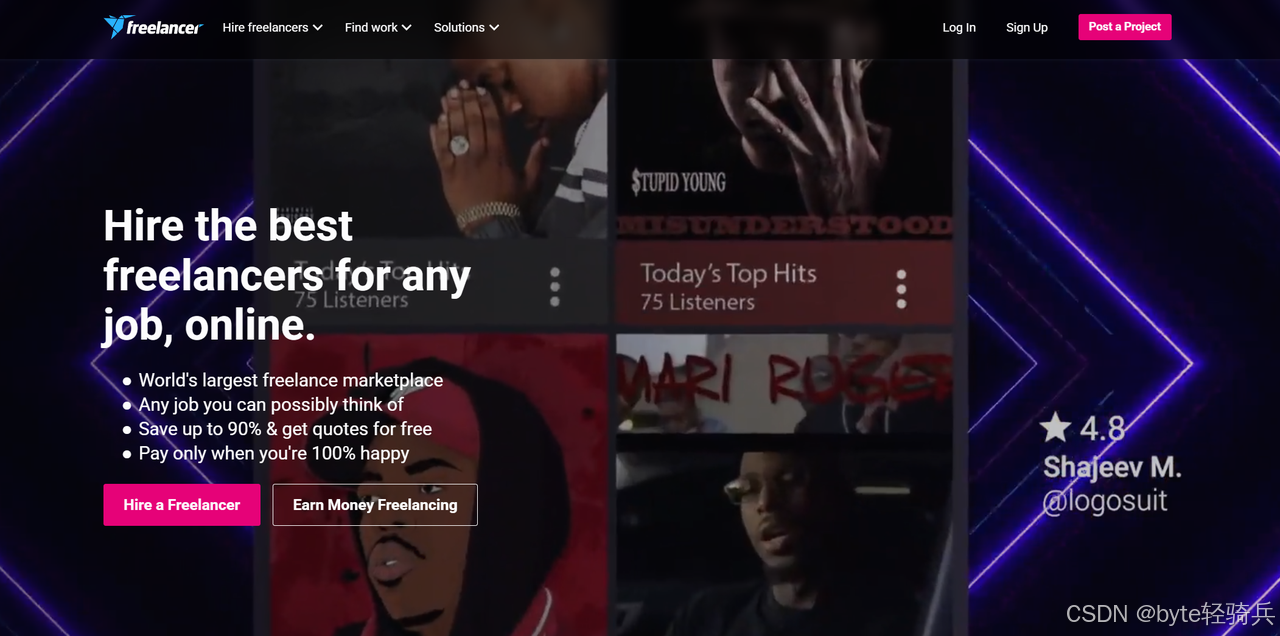 虽然 99designs 主要以设计类众包闻名,但随着 Web 技术的发展,平台上对于前端开发与代码实现的需求也在日益增加。特别是在建站领域,很多客户在设计阶段完成后,急需将设计稿转化为实际的代码。这就为擅长 HTML、CSS、JavaScript 以及各类 CMS(如 WordPress、Shopify)主题开发的程序员提供了机会。在这个平台上,程序员兼职 通常以"代码转化"或"建站服务"的形式存在。由于平台的核心在于竞赛模式,开发者往往需要与设计师紧密配合,或者在比赛中直接提供"设计 + 代码"的一体化服务以增强竞争力。对于不仅会写代码,还具备一定审美与前端还原能力的全栈开发者来说,99designs 是一个可以挖掘高溢价项目的垂直领域。