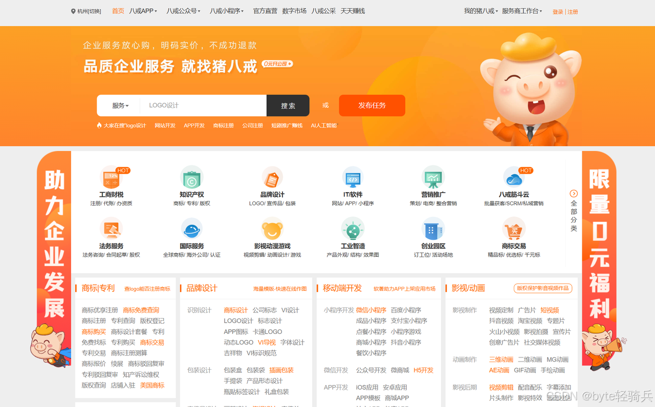 猪八戒网是国内起步较早的综合性服务众包平台,其业务范围广泛,涵盖从 logo 设计到企业级系统开发的各类需求。在这个平台上,程序员兼职的机会非常多,但同时也伴随着激烈的竞争。