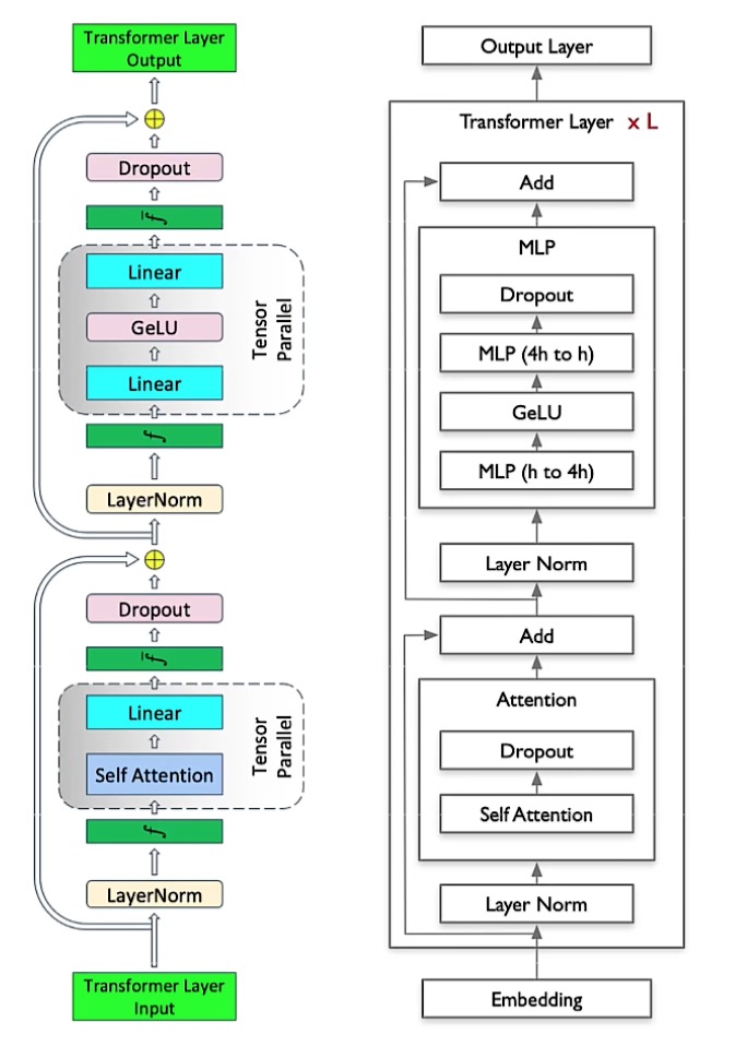 Megatron-LM:NVIDIA开发,提高大模型分布式并行训练效率和线性度