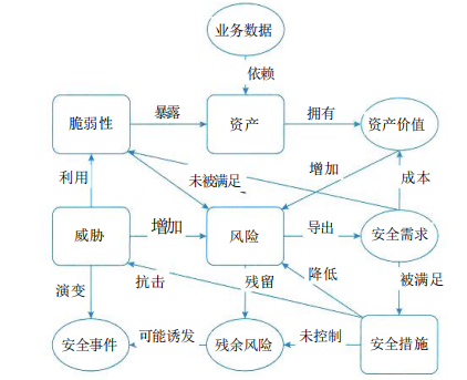 风险评估 的基本要素为脆弱性、资产、威胁、风险和安全措施,与这些要素相关的属性分别为业务战略、资产价值、安全需求、安全事件和残余风险。