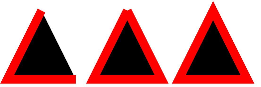备注: 使用 ClosePath 命令闭合的形状的外观可能与使用其他命令向起始点绘制一条线而闭合的形状不同,因为前者是将线条的末端连接在一起(根据 stroke-linejoin 的设置),而不是仅仅绘制到坐标点上。