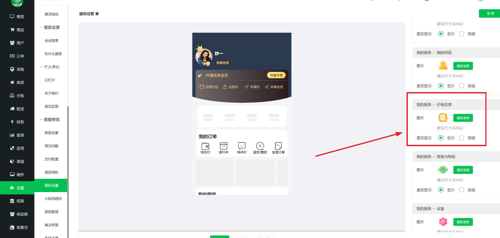 系统设置的个人中心中,新增反馈入口设置,可控制反馈入口是否显示;【解读】:可灵活控制用户个人中心是否显示价格反馈入口,比如活动期间暂时隐藏,避免无效反馈过多,适配不同运营场景。