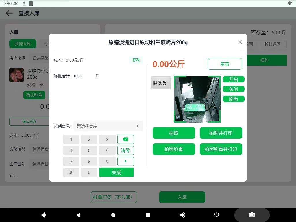 一体称仓库端支持双摄像头功能,可根据需求切换使用不同摄像头;【解读】:适配需要同时使用两个摄像头的分拣场景(如一个摄像头扫商品条码、一个摄像头记录入库出库过程),提升仓库管理过程的可追溯性,规范仓库管理操作。