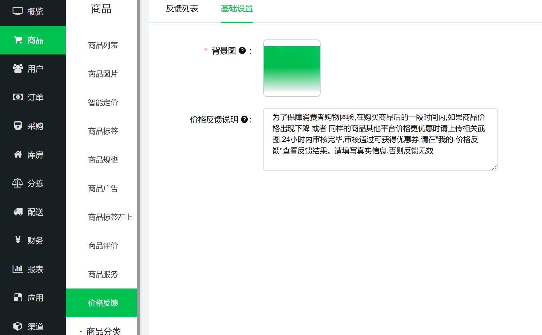新增后台商品价格反馈页面自定义样式设置,可调整反馈页面的展示风格;【解读】:管理员可根据后台整体操作界面风格,调整价格反馈页面的、颜色、,让页面更美观、易用,提升管理员操作体验。
