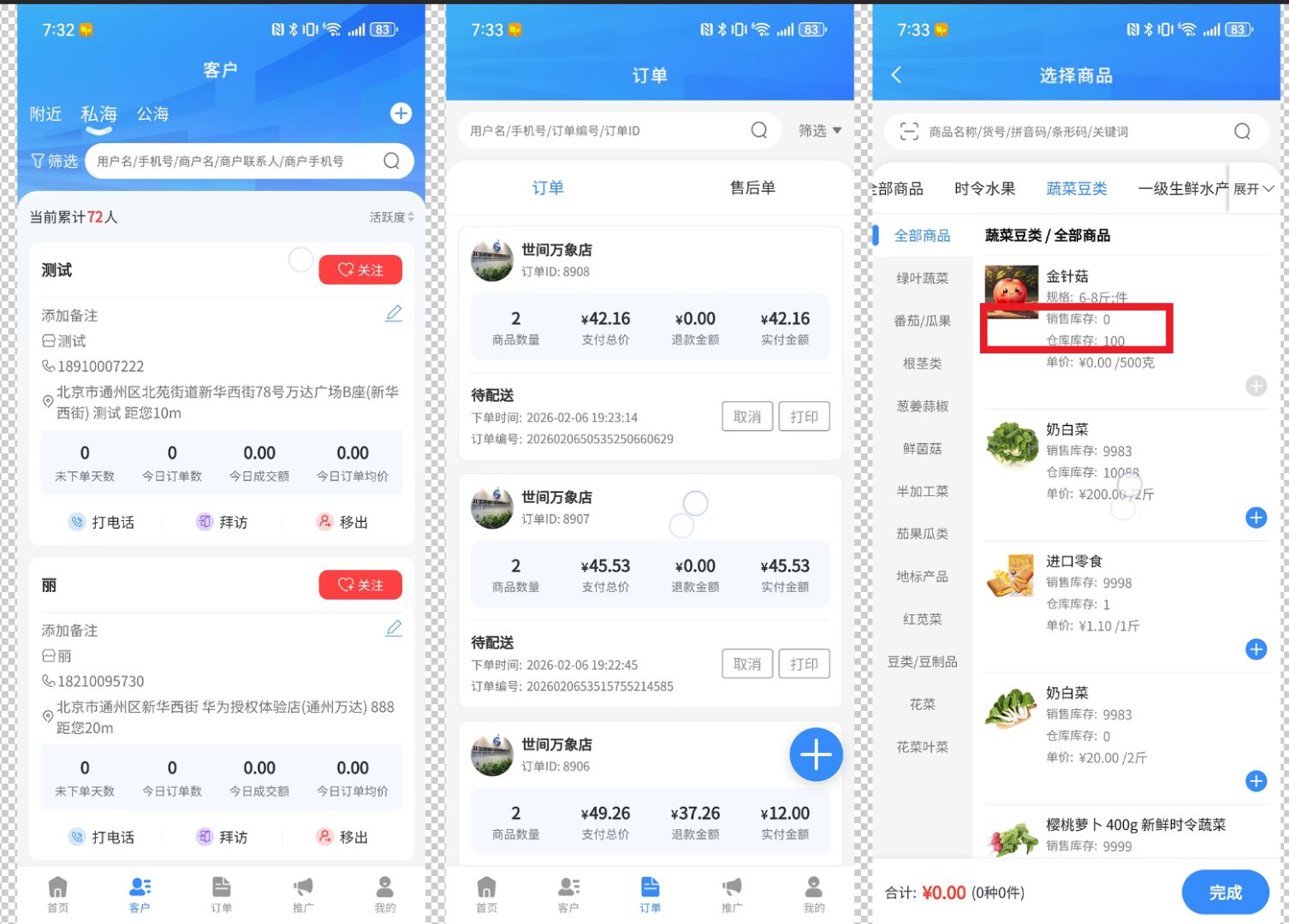 本次更新围绕服务费/代采费管理、后台订单操作、后台商品管理、商城客户端、仓库手机端、仓库一体称端、手机分拣端、一体称分拣端,Windows分拣端,pda分拣端,司机配送端,业务员端等多维度进行功能新增、优化与重构,本次更新114项,各个端都需要同步升级到最新版本,详细更新日志如下: