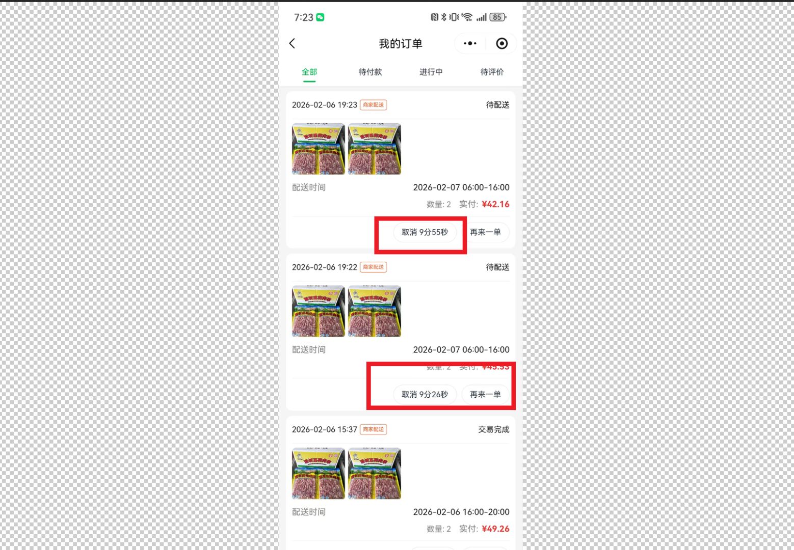 商城端订单列表、订单详情页面,将根据订单取消时间配置,显示订单可取消的时间倒计时,提醒用户及时操作;【解读】:用户可清晰看到当前订单剩余的取消时间(如"还剩10分钟可取消"),避免因错过取消时限导致无法取消订单,提升用户体验。