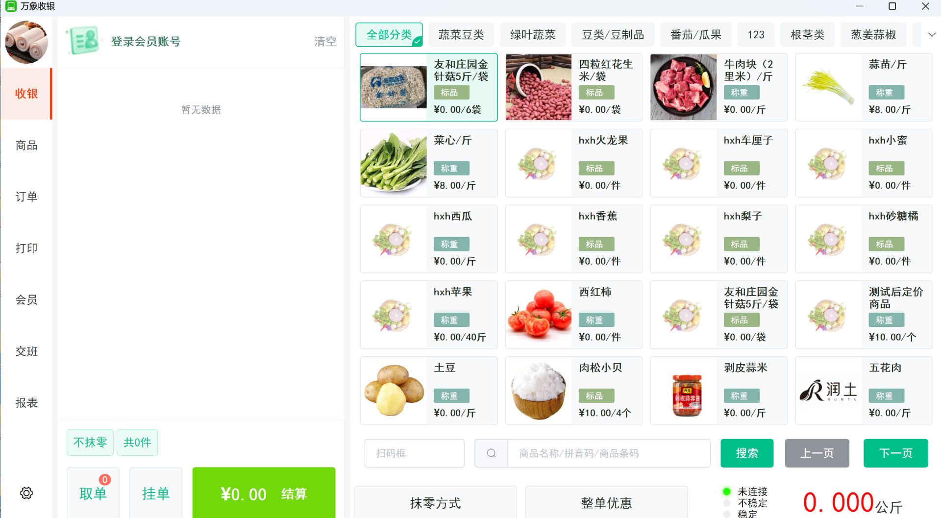 商品设置中,可控制商品是否使用毛单价、净单价功能,适配不同商品的计价需求;【解读】:部分商品按毛重计价(如带包装的生鲜),部分按净重计价(如散装蔬菜),可灵活控制是否启用毛单价、净单价,让商品计价更精准,适配不同商品特性。