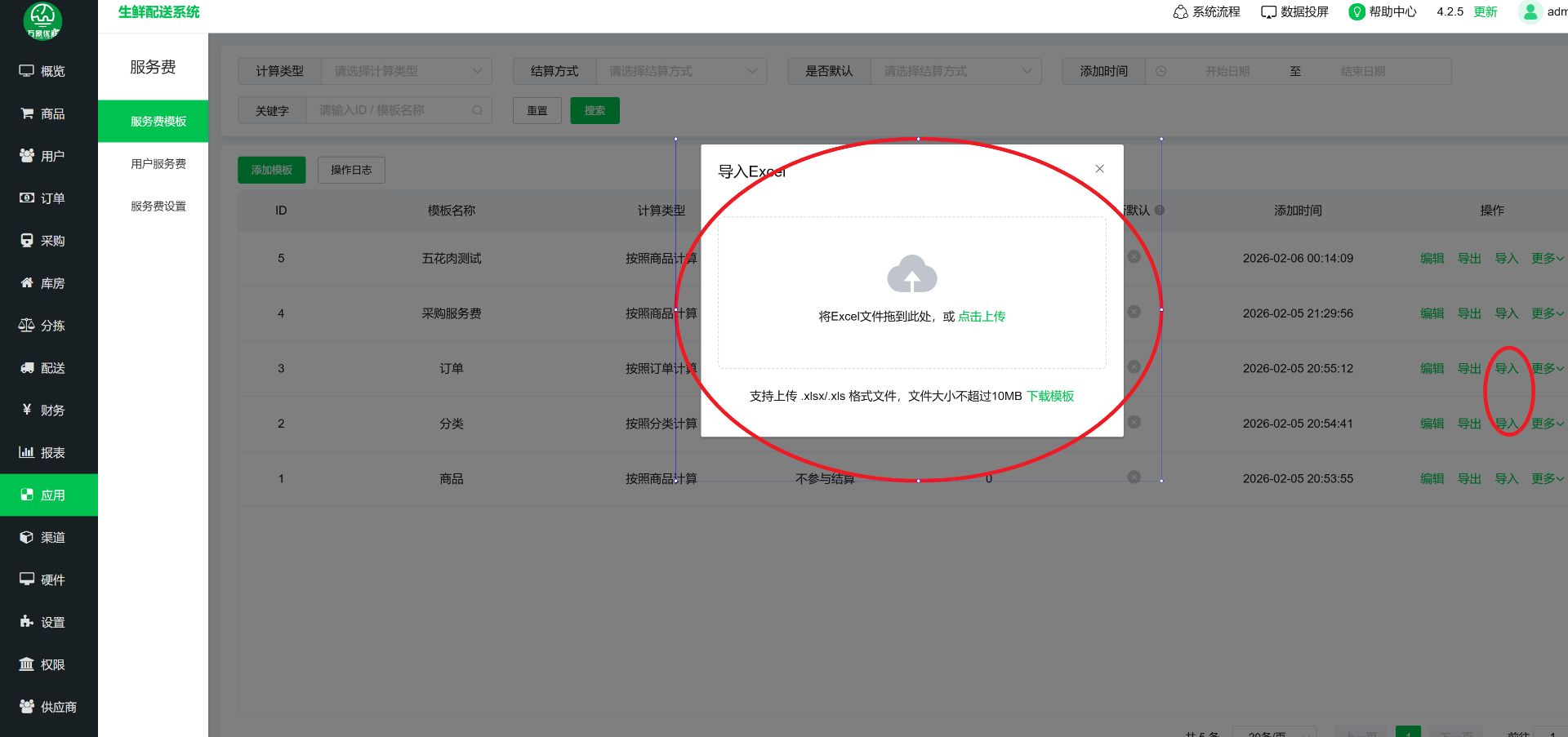 添加服务费模版支持通过Excel导入新增,批量添加更高效;【解读】:当需要创建大量服务费模版(如为几十上百个客户各设置专属模版)时,可在Excel中编辑好所有模版信息,一次性导入系统,不用手动逐个添加,大幅节省时间。