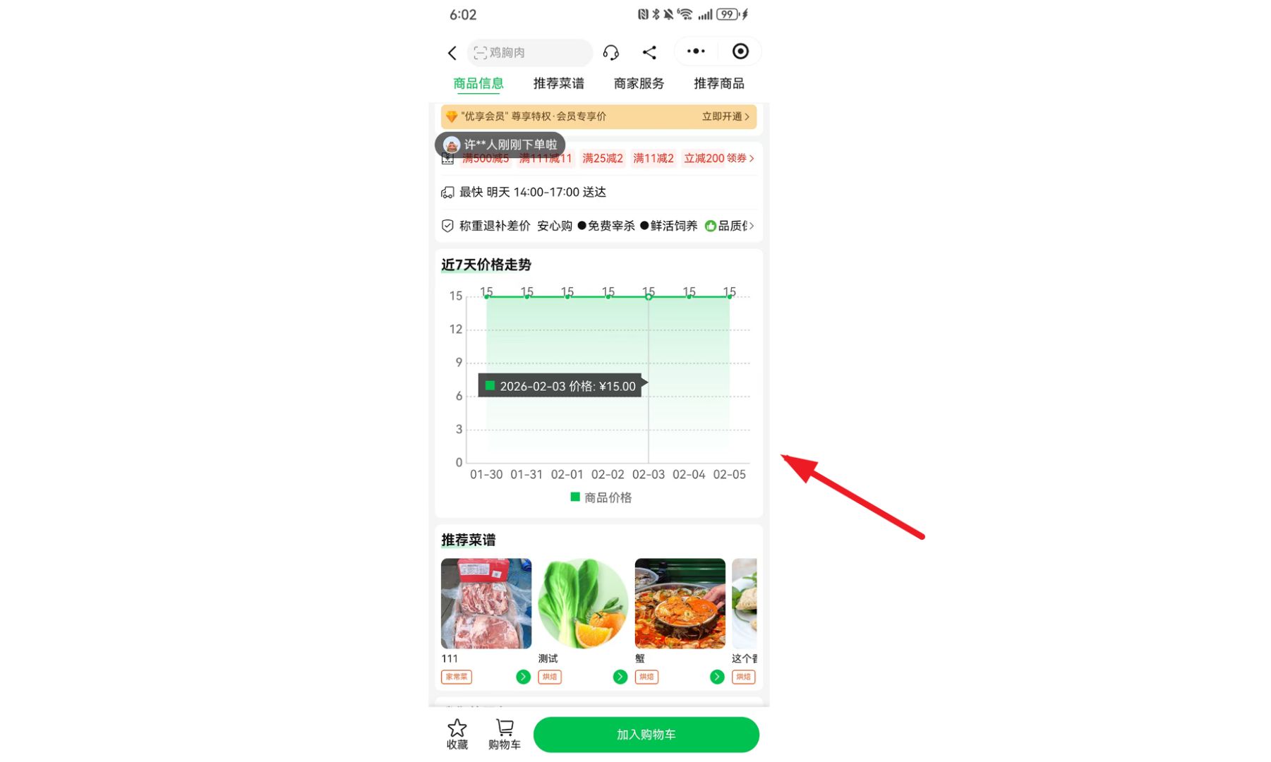 商城端商品详情页新增重量价格、价格走势功能,让用户清晰了解商品价格与重量的关联及价格变化;【解读】:用户在商城浏览商品时,可直接看到商品的重量对应的价格(如每公斤多少钱),以及近期价格涨跌,方便对比选择,提升购物体验。
