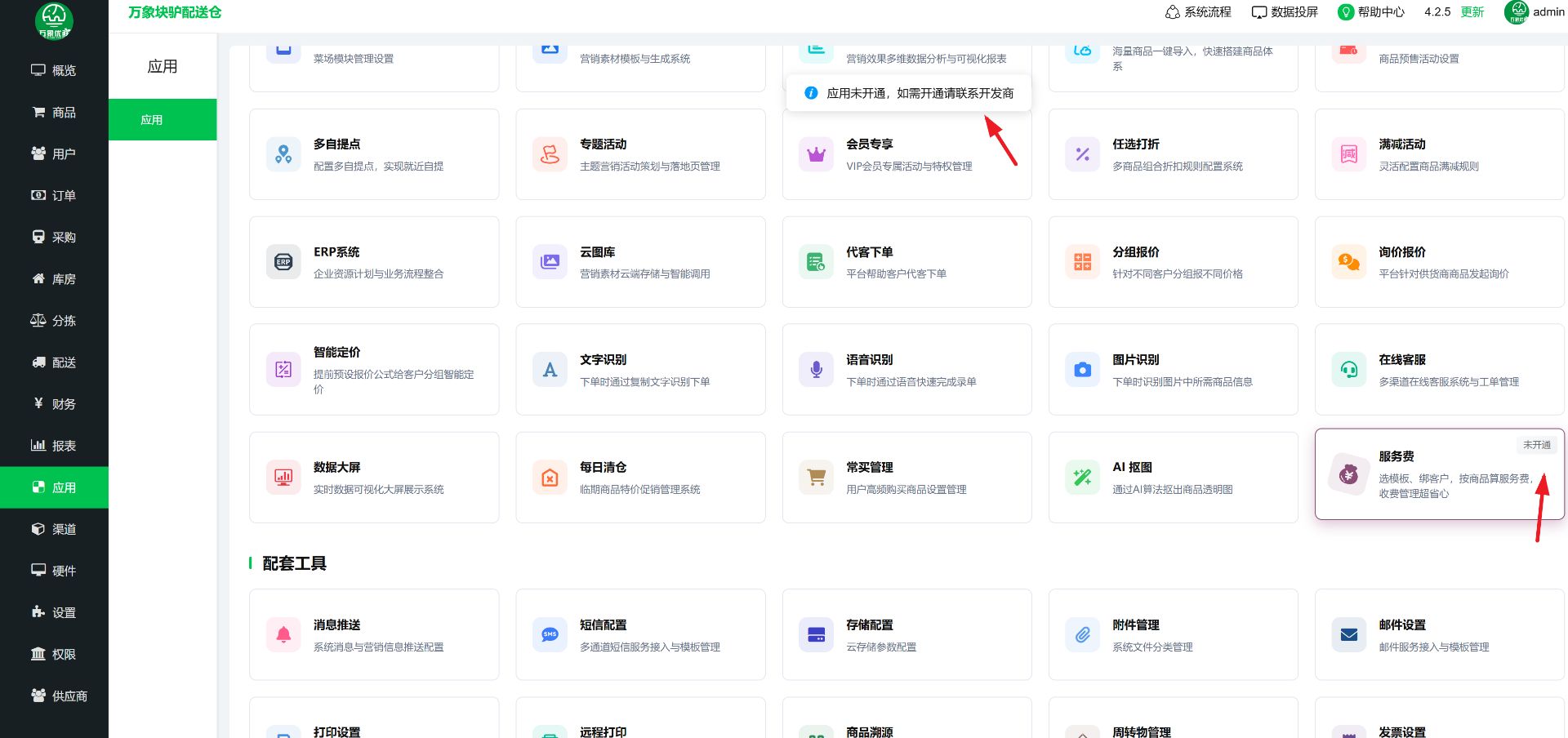 应用里服务费功能单独授权开通,可根据自己需求选择是否使用;【解读】:不是所有客户都需要用服务费功能,所以我们推出付费开通版本,可以按需求购买开通。