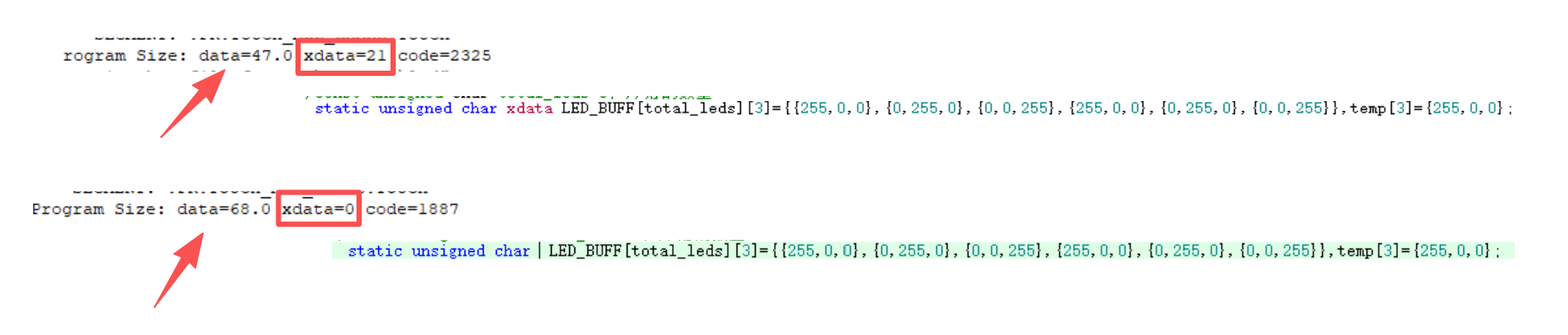 | idata | 默认的临时变量 | unsigned char data buffer[10];,unsigned char idata buffer[10];,unsigned char buffer[10]; |
