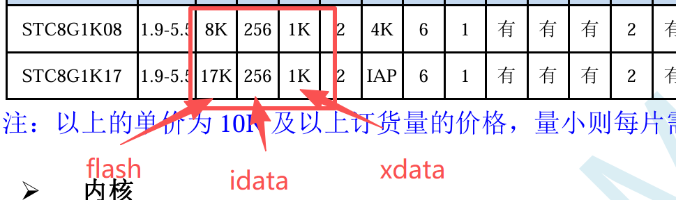 从下图中看出,flash 一般容量最大 ,idata/iRAM 最小但访问速度最快 ,xdata 速度最慢