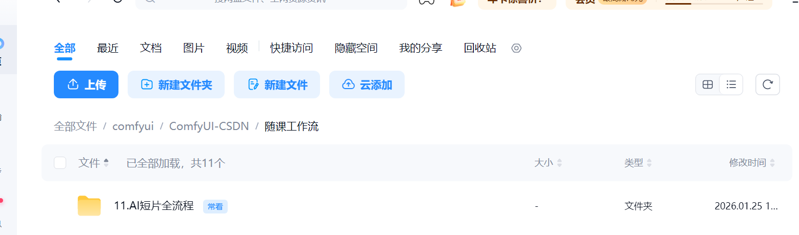 首先,我们需要从网盘找到本节课需要用到的工作流 ------AI短片全流程