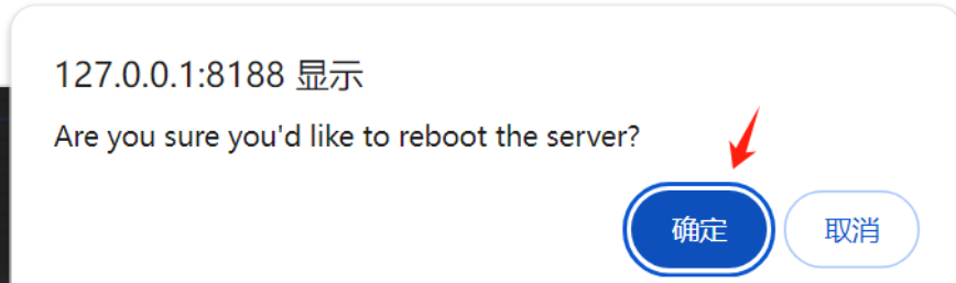 - 这个时候,会提示是否确定重启服务器,点击 "确定" 即可。