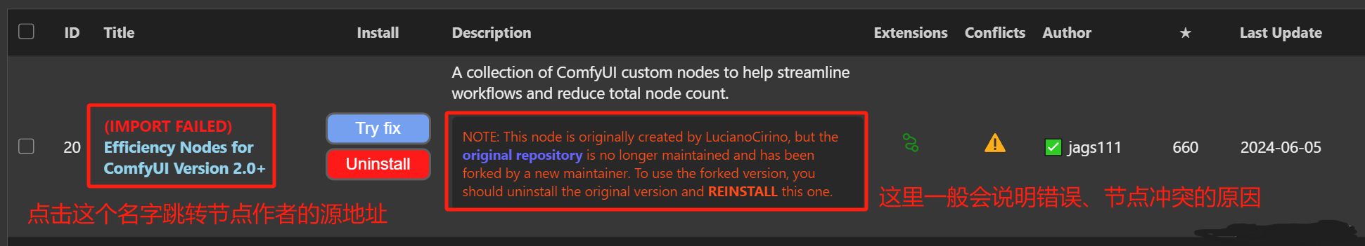 是因为,这个工作流,学易我在刚开始做的时候,老版本还是可以用的,但是随着时间的推移,这个老版本的节点过时了,所以就不能用了。一般节点,都是直接升级就可以,但是,偶尔会遇到直接升级失败的情况,这次遇到的,就是其中的一种典型情况。