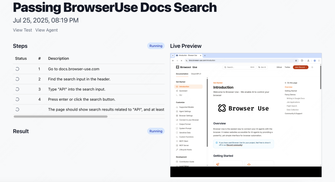 开发者可以通过可视化界面监控 AI 代理的执行过程,支持暂停/恢复/停止操作,并能生成详细的 UX 评估报告,包括发现的问题、交互流程分析和改进建议,从而让开发者从繁琐的手动测试中解放出来,专注于更重要的开发工作。