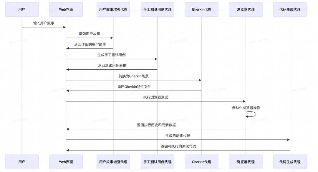 将用户输入的简单想法自动生成综合的手工测试用例,通过智能浏览器代理在真实浏览器环境中执行测试并收集交互数据,最后生成支持多种主流框架(如Selenium、Playwright、Cypress等)的自动化代码。