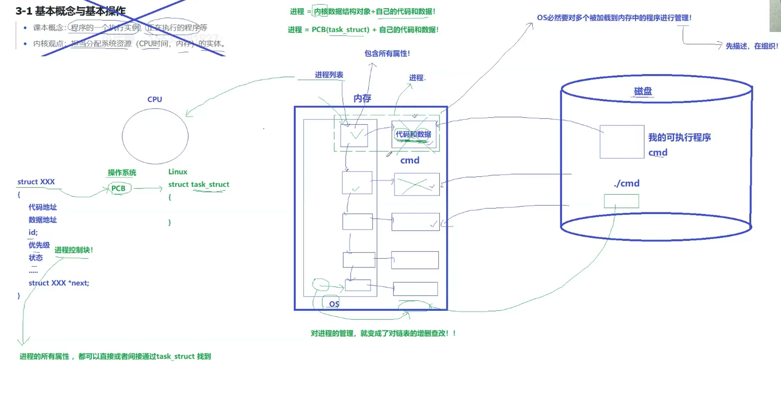 看该函数有没有访问硬件 进程 = 当前正在运行的程序(更准确的说法是程序的执行示例,因为程序是静态的,进程才是动态的,最好不要说正在运行的程序,而该部分实际指的是虚拟地址映射到的实际物理内存,其中包括代码段、数据段、堆栈段等) + 操作系统为了管理该程序所需的资源(如优先级,ip等,这些资源被存储到了一个结构体中-》即进程控制块PCB),同时,进程控制块只是描述,还需要将所有进程的进程控制块通过数据结构进行连接,操作系统才能够加以准确管理