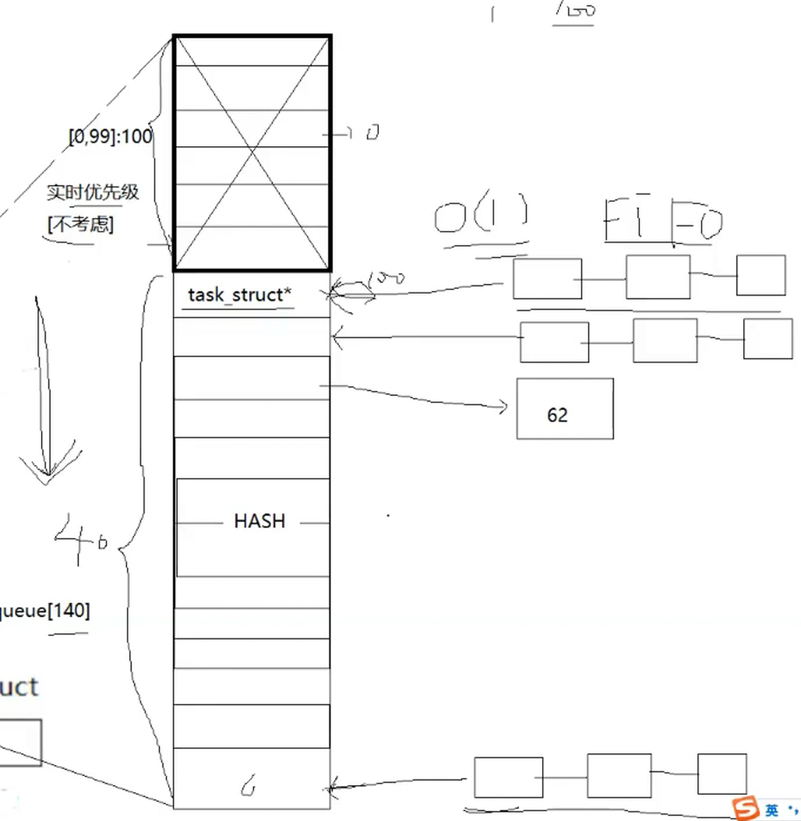 为什么哈希(queue变量)的大小为140呢?这是因为Linux中其实共具备140个优先级,但是,上面提到的Linux优先级知识点中,不是说Linux的优先级范围是60~99吗,其实,上面提到的